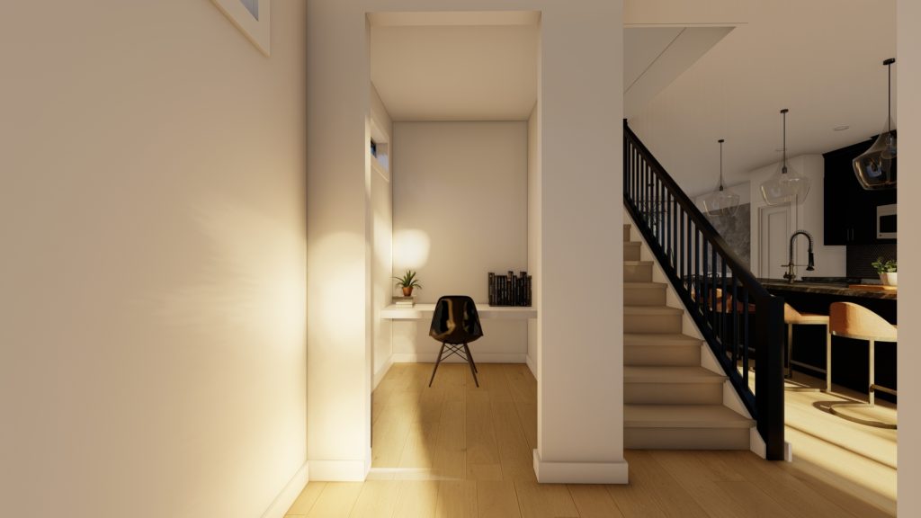 This incredible 1457 sq.ft design includes 3 bedrooms + laundry upstairs, 2.5 bathrooms, and a main floor den. The statuesque exterior with HUGE windows is sure to make a statement on the street!